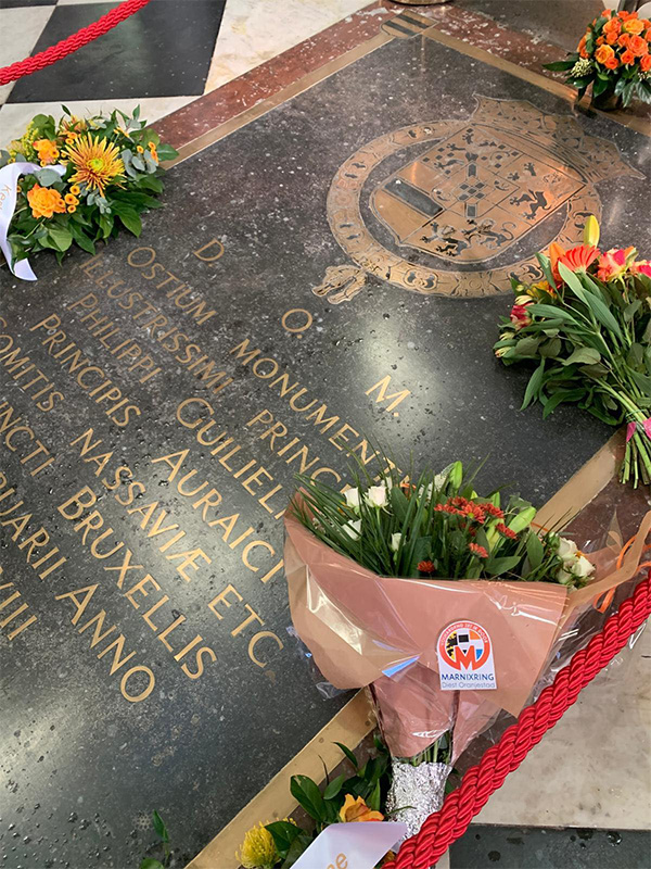 Jaargetijde en bloemneerlegging voor Filips-Willem, Prins van Oranje en Heer van Diest, aldaar begraven in de Sint-Sulpitiuskerk.